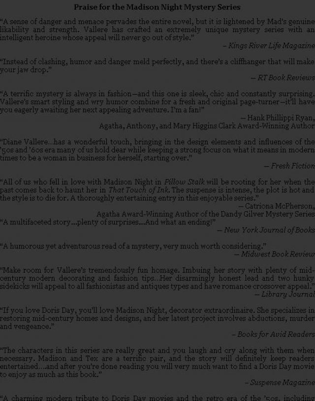“All of us who fell in love with Madison Night in Pillow Stalk will be rooting for her when the past comes back to haunt her in That Touch of Ink. The suspense is intense, the plot is hot and the style is to die for. A thoroughly entertaining entry in this enjoyable series.”
