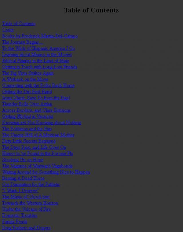 Many Mexicans and other foreigners entering the United States arrive illegally, without proper documentation, are derided for their ignorance of the law and lack of consideration for the customs of the country they hope to adopt for their own. Mexicans, in particular, are regarded as Wetbacks because of the arduous journey they must undertake, which includes crossing the Rio Grande or enduring the awful heat of the South-West, drowning in their own sweat. Whatever route they chose for their exodus from their home country, they end up all wet. In my case, however, I would be known as the wetback in reverse ~ an American-born Mexican who was heading back for the homeland of my fathers because life in the USA was becoming more and more uncertain and expensive; because the global financial melt-down forced me to confront hard choices about the future, and job prospects were nil and void; because I suddenly felt the impulse to take off and search for my ancestral roots; and because life in the USA was unendurably boring in the extreme. Thus, I felt I needed some of the stimulating vulgarity, violence, vanity, vagaries, vexations, vituperation and vacuous venality that make up survival in most Mexican towns in order to get the old wheels and turbines of purpose and devotion cranking again. Also, just to get my jollies off, I’d thought to try my journalistic hand, and this country would be just the place to put myself through the investigative ringer, as it were. There is much to be said as well for the simple, unobtrusive, undemanding existence of Mexican village life, however, where-about, most often, you have to chase down and kill your own supper!