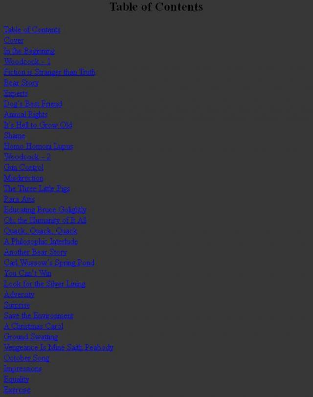 Short stories having first appeared in Shooting sportsman magazine.