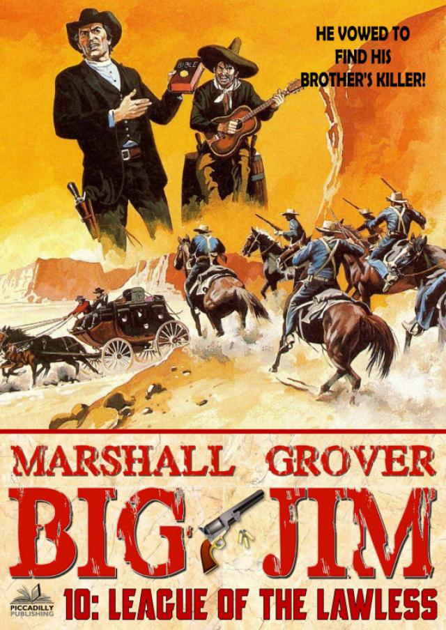 Big Jim used to be Sergeant Rand of the 11th Cavalry. Now, as a civilian, he was on the trail of his brother’s killer. When he rides into the town of Frankston in Northwestern Kansas, he soon finds himself on the trail of a gang of merciless desperadoes. For a disguise, those outlaws were using the uniform of the U.S. Army. The big man decided upon an equally unique disguise, and penetrated the lair of the lawless in a suit of sober black; he toted a Bible in one hand, a long-barreled Colt .45 in the other. And, as ever, aided (or hampered) by his Mexican sidekick, Benito Espina, they take on the duplicitous gang.