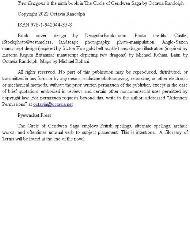 Two Dragons is the ninth book in The Circle of Ceridwen Saga by Octavia Randolph