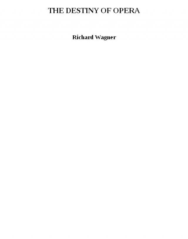 This essay was published in the Spring of 1871 (E. W. Fritzsch, Leipzig), with the subsidiary title "An Academic Lecture by Richard Wagner." The author had in 1869 been elected a member of the Royal Academy of the Arts in Berlin, and "The Destiny of Opera" was intended as the thesis for his installation, which followed on April 28, 1871.