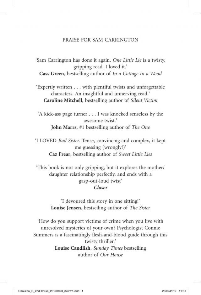‘Sam Carrington has done it again. One Little Lie is a twisty, gripping read. I loved it.’