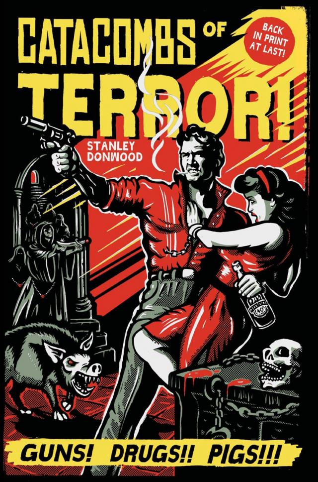 Somehow a cider-fuelled bet had been laid between publisher and artist; and Ambrose Blimfield agreed to pay Donwood a handsome royalty if the latter could write a sixty-thousand-word detective novel in one month. The artist accepted, and amazingly, won the bet—Catacombs of Terror! was the result.